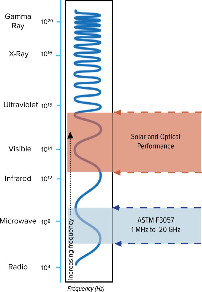 Tested to and meets ASTM F3057 Standard Test Method for Electromagnetic Shielding Effectiveness of Glazings